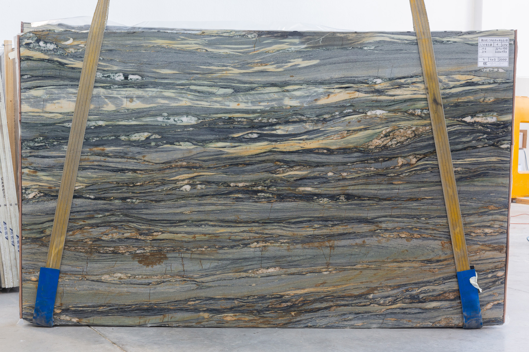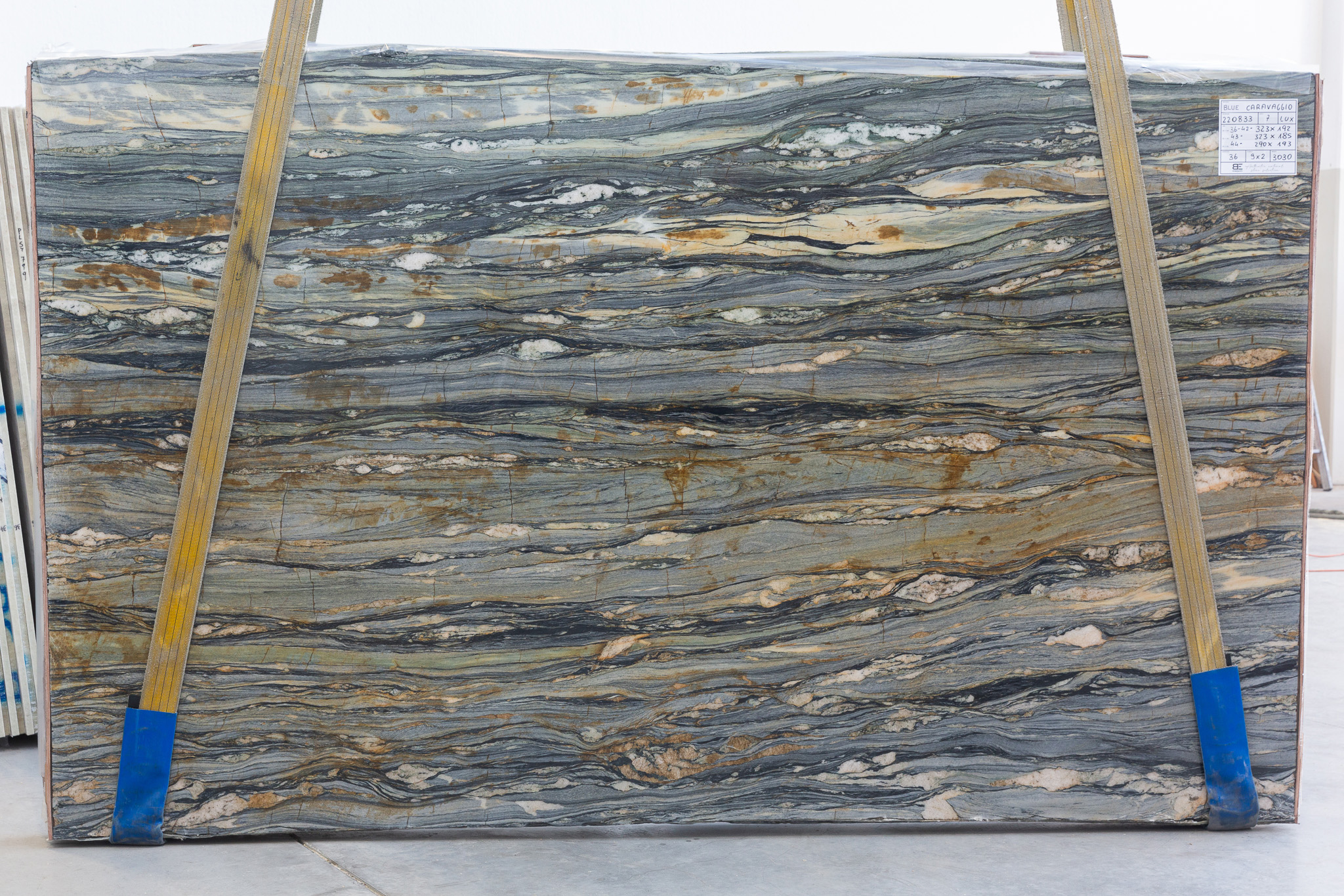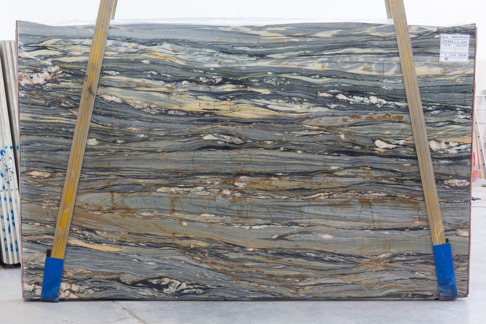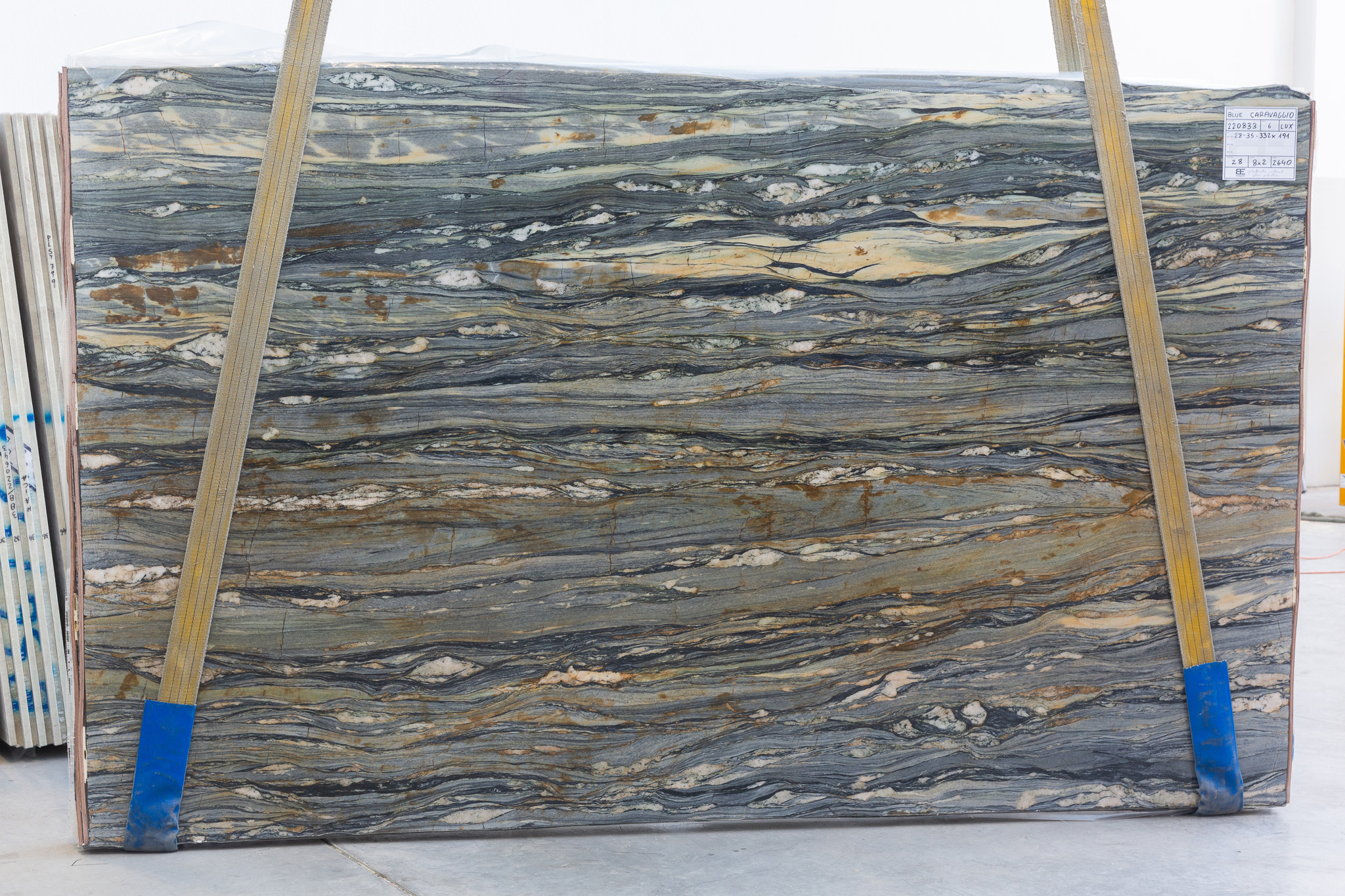 Blue Caravaggio (220833) Quantity Available 3CM: 5 – 323X193 (Polished) Quantity Available 2CM: 32 – 322X192 (Leather)