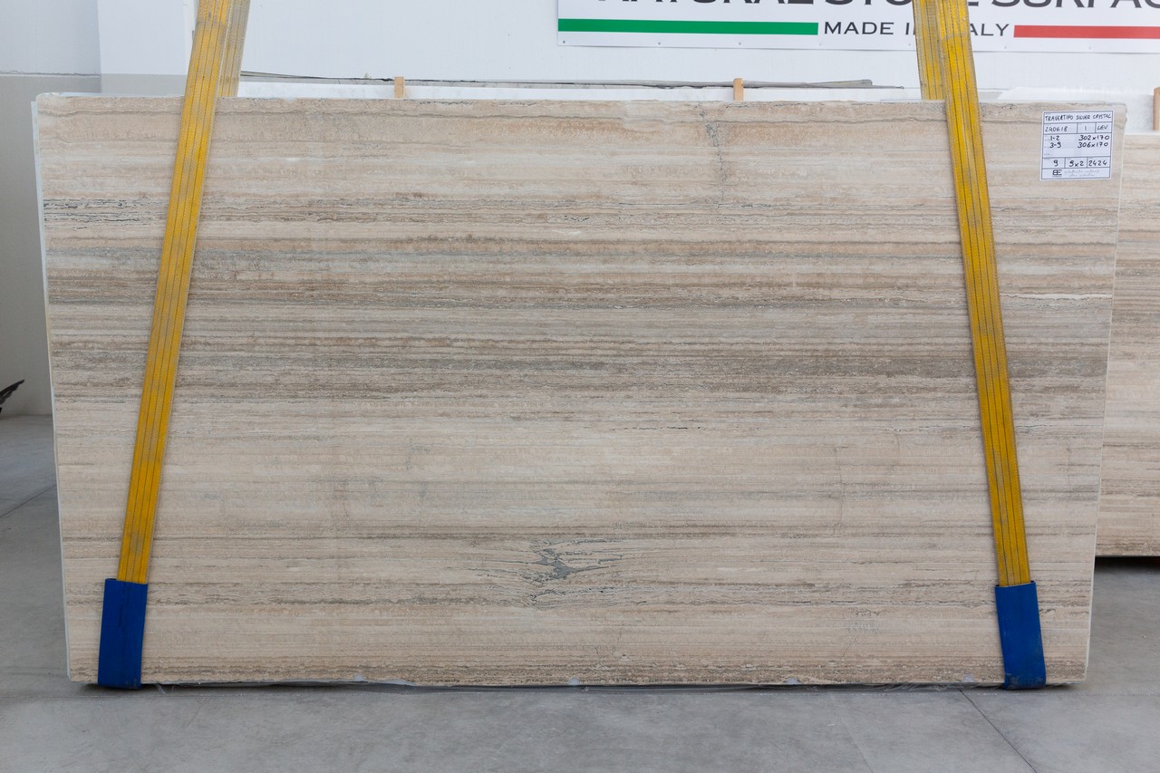 Travertino silver crystal (240618) Quantity Available 2CM: 33 – 302X171 (Honed and filled )